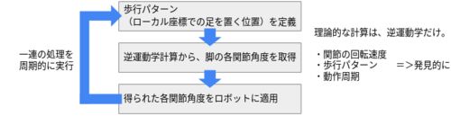 前回の振り返り 今週の概要 静歩行動作の実装結果 静歩行動作の内部 まとめ 前回の振り返り 前回の記事では、考案したソフトウェア構成に沿ってコードを整理しました。今回は、逆運動学を用いて静歩行動作を実装しました。 odome.hatenablog.com 今週の概要 …